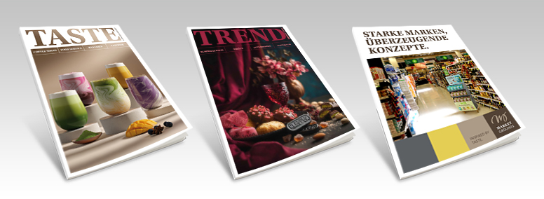 In unseren Katalogen finden Sie nahezu unser komplettes Sortiment speziell abgestimmt auf die Bedürfnisse der Gastronomie (TASTE), des Feinkosthandels (TREND) und des Lebensmitteleinzelhandels. Alle Kataloge bieten wir Ihnen auch in gedruckter Form an.